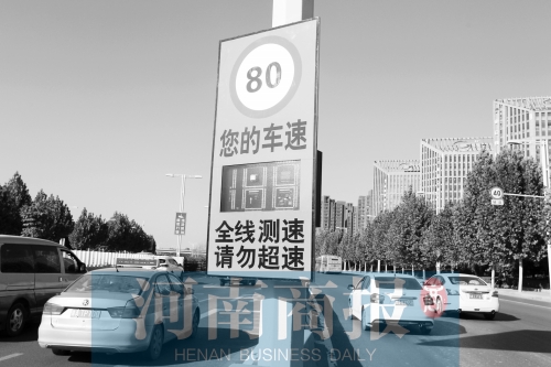 实地探访中,在西三环与电厂路交叉口北向南路段,河南商报记者也看到了市民所说的测速仪:整体呈黄色,上面有80字样,提示“全线测速,请勿超速”,而在仪器中间的屏幕上,会实时显示旁边经过车辆的速度。