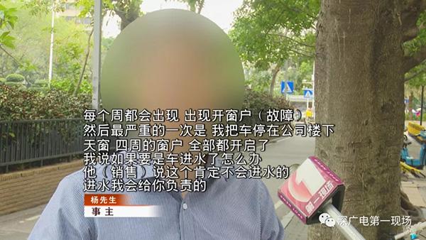 今天下午,记者跟着杨先生再次来到了南方腾星4s店,售后经理陈先生表示,车辆自动开启天窗的换气功能,是这辆车的一个特别功能,对于给客户带来的不便,这位工作人员却始终无法解释清楚。