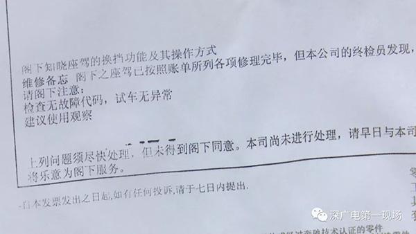 杨先生说,自此之后,无论车上是否有人,车辆天窗经常都会出现自动开启的现象,即便是经过检修,可问题还是没有得到彻底的解决。不仅如此,杨先生说,在这之后,车辆的还出现了各式各样的故障。