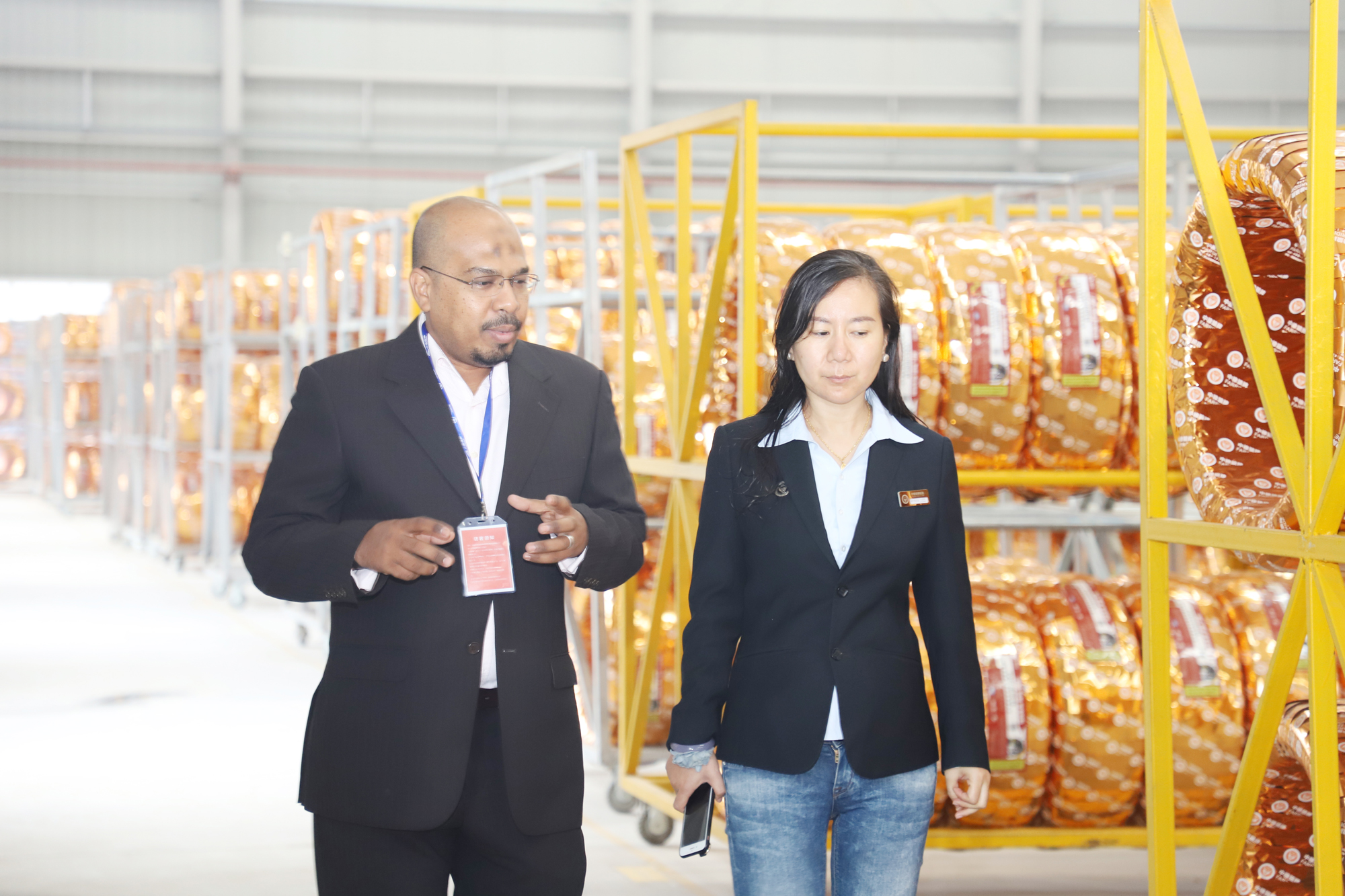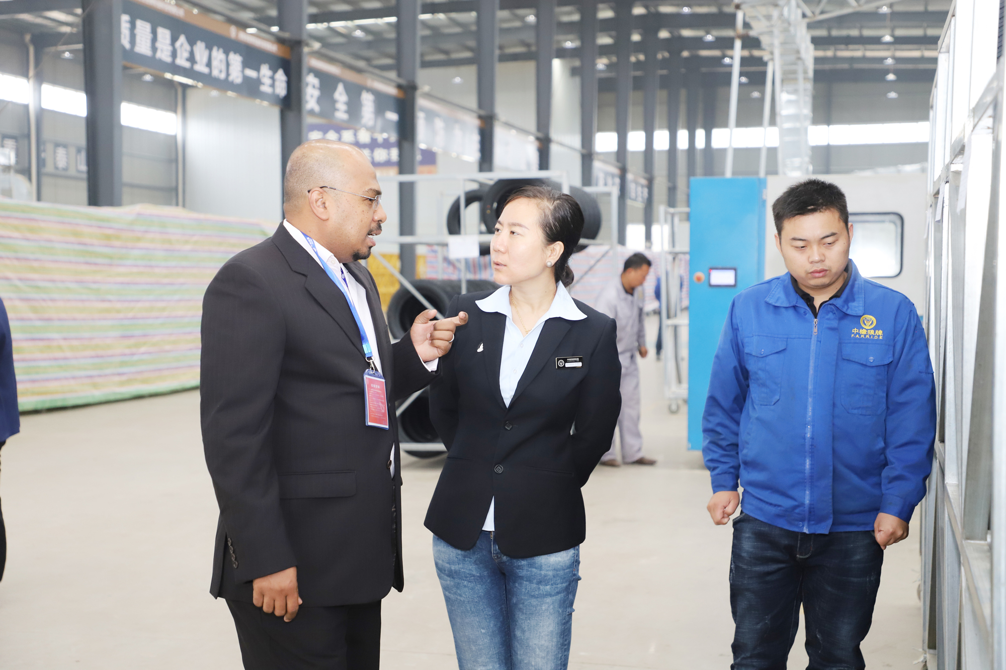 牛董菲副总经理向苏丹客商详细讲解了中橡狼牌轮胎的生产工艺流程,积极认真地解答了苏丹客商提出的问题。苏丹客商也在参观过程中对安全轮胎市场有了一个初步的了解,并就苏丹国内急需的轮胎型号进行了详尽的沟通。