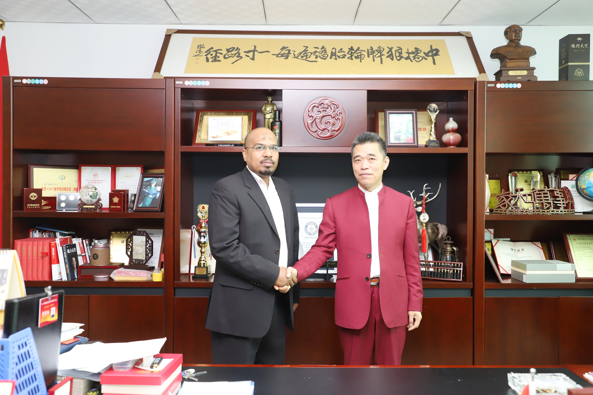 中橡狼牌轮胎董事长熊国武先生在百忙之余亲切会见了苏丹客商Ibrahim Ahmed Elbadawi,并就相关合作进行了详尽的交谈。其间,苏丹客商认真观摩了中橡狼牌轮胎历年来所获得的各项荣誉证书,并认真观摩了产品宣传片。