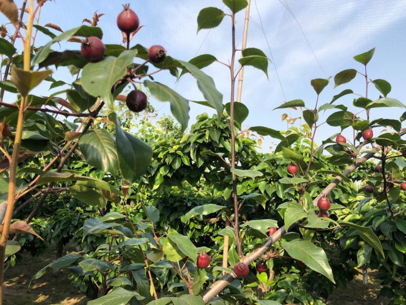 在赵岗村,一片占地10余亩的晚秋黄梨树林郁郁葱葱,枝头上大枣一样大的梨果挂满枝头。46岁的村民张宏伟说:“2013年种植晚秋黄梨以来,每年都会吸引很多市民前来观赏采摘,晚秋黄梨早早的都被订购一空。”