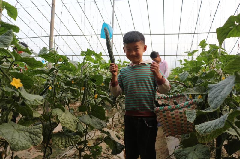 来自开封市区的几户市民带着孩子,正在园内尽情地采摘黄瓜,享受采摘乐趣。“在城里住久了就想感受一下农村生活,特别是对于孩子而言,田园采摘可以告诉他们食物是从哪儿来的,这儿离开封市近,交通便利,开车40分钟就过来了,这儿的黄瓜好吃,口感清甜,一点也不涩,孩子们爱吃。”市民李辉告诉记者。
