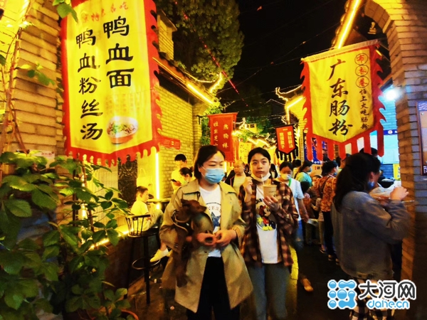 在青砖石板的布衣巷小吃街,烤面筋、烤羊脑、芝士红薯、水果盒子……众多“网红”小吃引得游客纷纷在小吃摊前排起了长队。“这里夜景美、人气旺,吃的喝的玩的都有。”正和家人一起逛街的市民刘先生说,这里经常举办灯光节、音乐节、欢乐巡游演出等夜间游主题活动,还有大型水幕光影秀等,他和家人时常到这里逛一逛,放松放松。