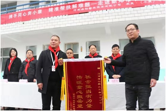 “非常感谢大家一大早冒着严寒赶来看望全体师生,为我们送来这么多有爱、有温度的物资,真的让我非常感动,我代表学校全体师生向参与方表示诚挚的谢意。”辛店镇湛张完全小学校长赵伟阁为活动参与方颁发相关锦旗和荣誉证书。