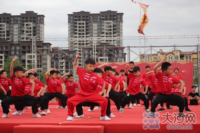 该县各大武术培训学校也纷纷展演了精彩的武术节目。上台表演的学员年龄最小的仅有四五岁,可习练起武术来动作却有板有眼。学员们或腾挪雀跃,吼声如雷;或舞起刀剑棍棒,风声呼呼摆起严密的防护阵势;或演示擒拿格斗,在不经意间一招制敌。各大武校的代表队随着音乐的节奏,表演了不同的拳法套路,招式娴熟,动作整齐,都展示出良好的精气神,现场不时响起阵阵热烈掌声。