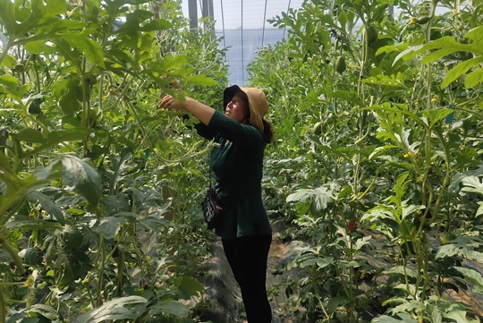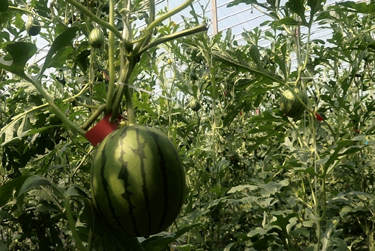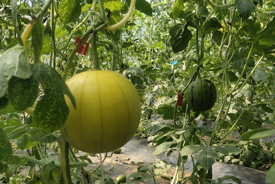 近年来,洪爱玲已不满足于在家里的几亩地上种瓜,她把眼光瞄向了外面。2020年,黄店镇政府以优厚的政策将其引进,在段村承包了7座大棚种植小吊瓜。今年,她扩大了规模,流转土地26亩,建设温室大棚13座,全部种植小吊瓜,目前长势良好。