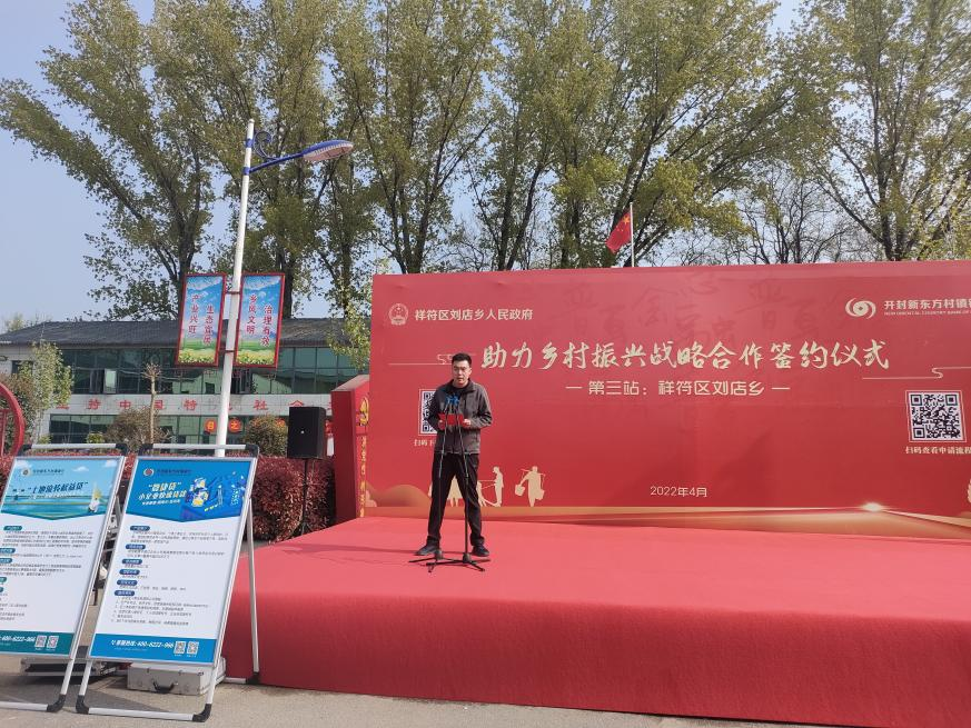 大河网讯 4月8日上午,祥符区刘店乡举行刘店乡人民政府和开封新东方村镇银行助力乡村振兴战略合作签约仪式。