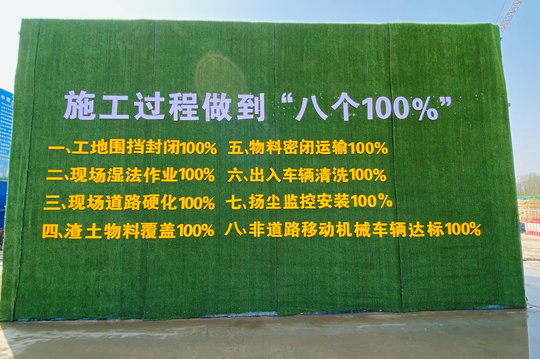 据了解,除此之外,现场还定期进行工地扬尘防治、防护知识培训,对现场工人进行交底,高标准硬核落实扬尘防控 8 个100%,即100%工地围挡,100%湿法作业,100%道路硬化,100%物料覆盖,100%密闭运输,100%车辆清洗,100%在线监控,100%机械达标,以硬核行动把各项措施落实到位。