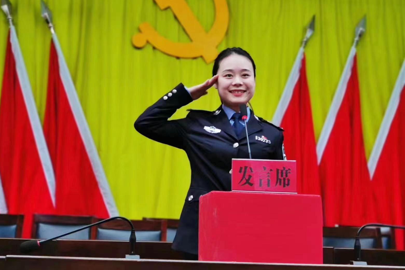 “如果辅警是一滴水,就要滋养一寸土地!如果辅警是一缕阳光,就要照亮一分黑暗!如果辅警是一颗螺丝钉,就要永远坚守岗位……”,站在演讲台上的她,淡定从容,张弛有度,清澈的眼眸里流露出坚毅的目光,铿锵的语音、动情的演讲倾诉着一名辅警的心路历程,深深地打动了每一位听众的心。