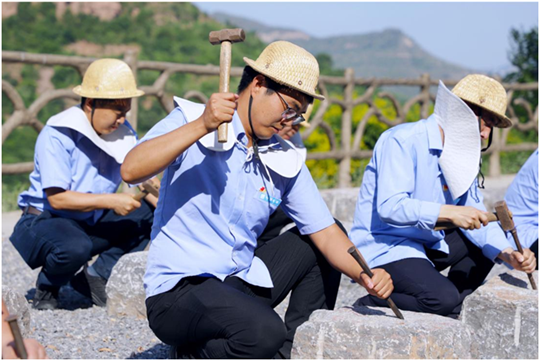 “叮叮,当当,叮叮当当......”在红旗渠体验基地凿石,党团员代表们穿上当年的工作服,抬石头、推独轮车、轮铁锤、砸石眼,身体力行地体验荒石变成料石、绝壁变成长渠的艰难过程,来重温先辈“自力更生、艰苦创业、团结协作、无私奉献”的红旗渠精神,引导广大党员和青年团员“听党话、跟党走”,为公司发展注入源源不断的新动能。