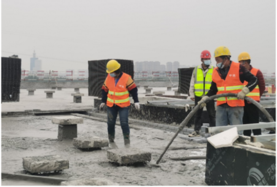 据悉,为了保障冬期施工的品质,确保各工序施工质量达标,中建一局一公司河南分公司各重点项目还组织开展了专项教育培训和交底工作,准确指导施工,严把冬期施工质量关。郑州金岱智慧产业园一期项目针对混凝土工程采取了严格的冬季保温措施,对混凝土罐车包裹保温材料,并科学添加防冻外加剂,在混凝土浇筑完成后又盖上一层“保暖被”,确保主体工程质量。