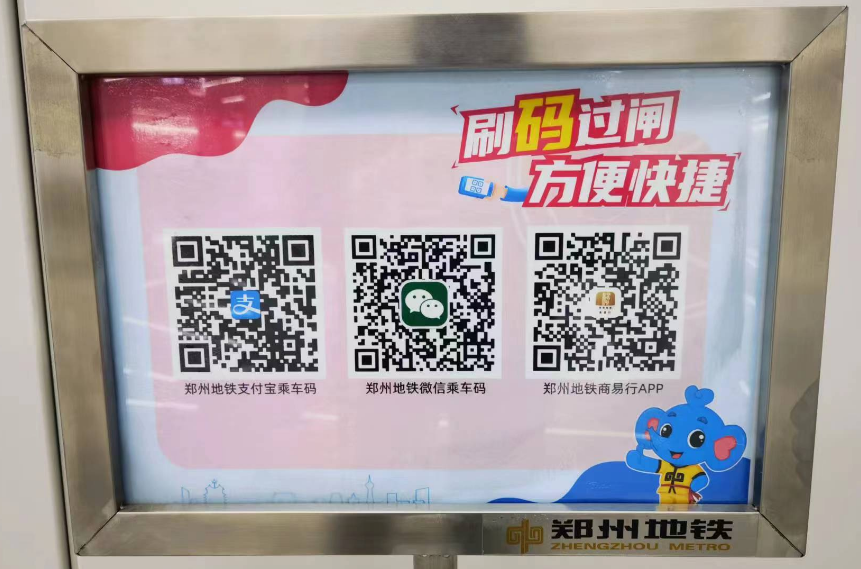 可通过微信、支付宝和郑州地铁商易行APP扫码进站。