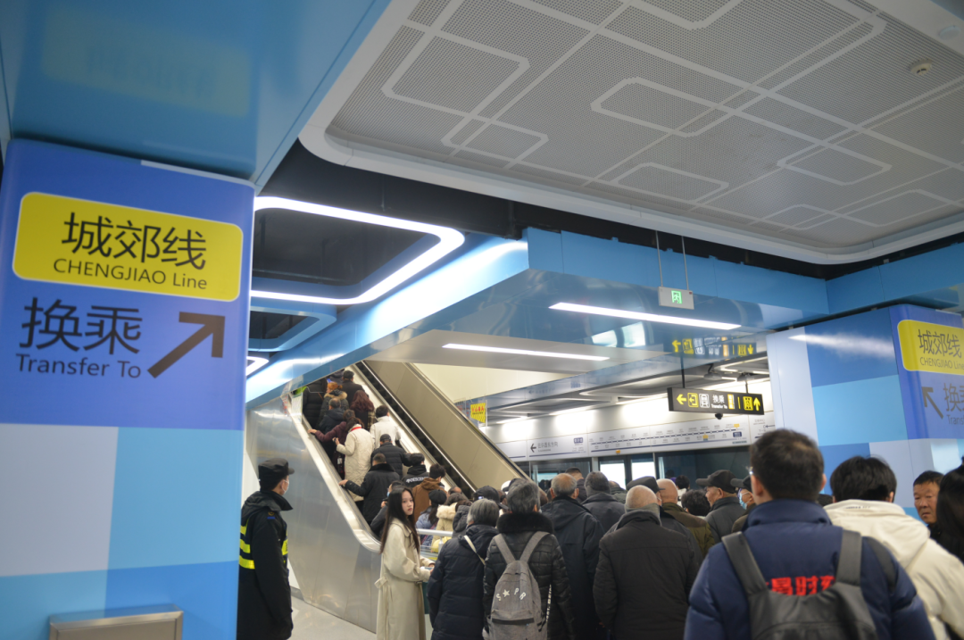 没有换乘经验的朋友无须担心,港区北站下车后,站台上会有“城郊线换乘”醒目标识,根据标识找到换乘通道,通道内设有自动扶梯,方便携带行李等物品的乘客出行。站内从郑许线换乘城郊线,步行时间大约需要10分钟。