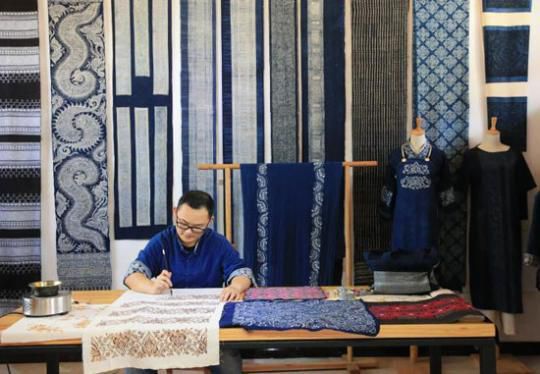 韦祥龙的家乡位于黔南山区,人口不过300万,手工艺发达,但因交通闭塞鲜被外人知晓。在他开始传承创业前,这项技艺已经断代,“过去布依族人都是穿手工编织的衣服,花色也都是扎染和枫香染。但现在大家慢慢丢弃了这样的习惯,只有在重大节日或祭祀时才会再穿上这些布制衣服。”