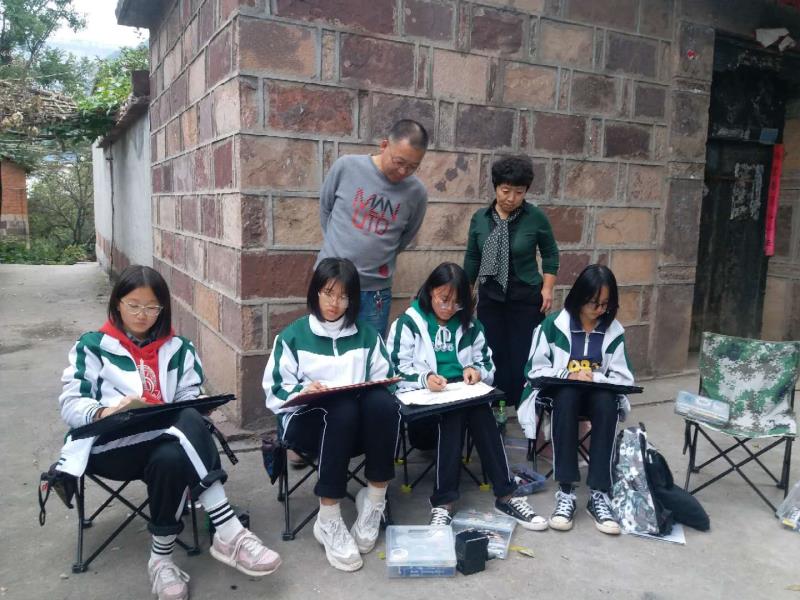 两校合作办学以来,喜爱美术的学生越来越多,社会影响力越来越大,家庭和学生的关注度越来越高。如今,学校已形成了自己的教学和管理模式,不仅开好校内美术课,还组织学生到校外上公开课,定期到太行山、石板岩开展风景画写生,促进学生能力的全面提升。经过四年的合作奋斗,学校美术教育已开花结果。新学年以《专己任,扬己长,实现美术教育新跨越》为中心,为学校工作谋篇布局。2018年高一学习美术专业的学生已达到91.4%,并全员参与写生,现两校在石板岩写生班级共计14个,人数达700人。