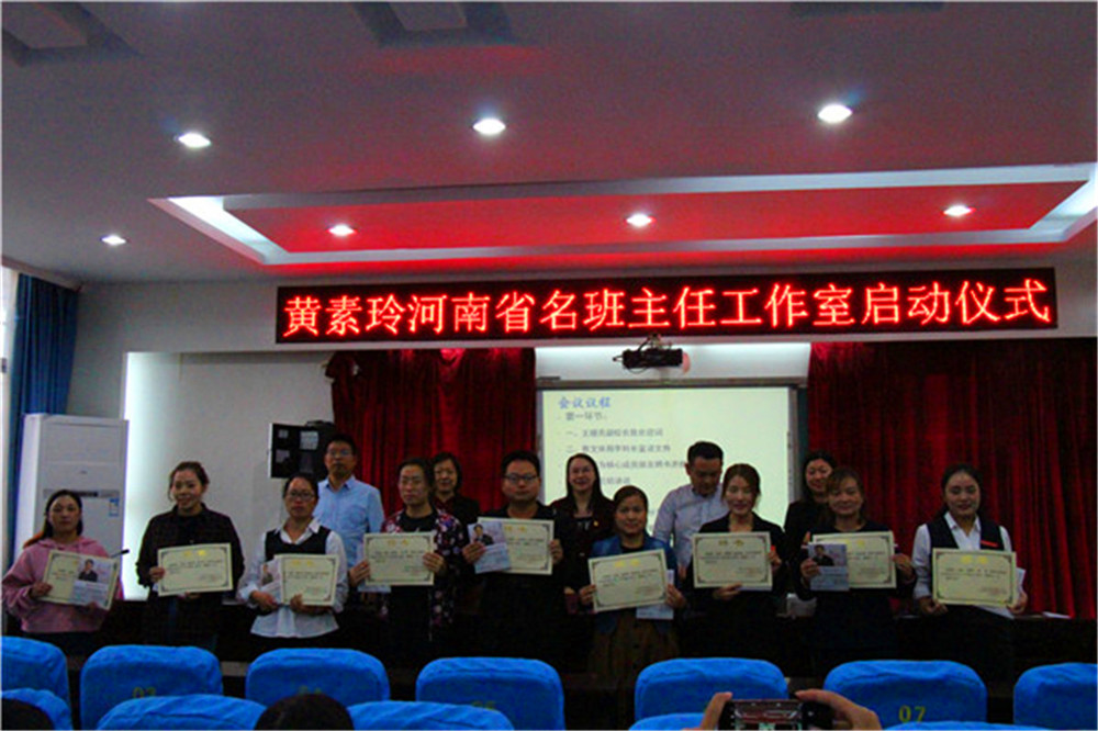 "黄素玲老师获得河南省名班主任称号既是个人荣誉也是学校荣誉。名班主任工作室的成立将促进学校青年班主任的成长。学校一定会大力支持名班主任工作室的工作,作工作室的坚强后盾。"在仪式上,学校副校长王继亮说。