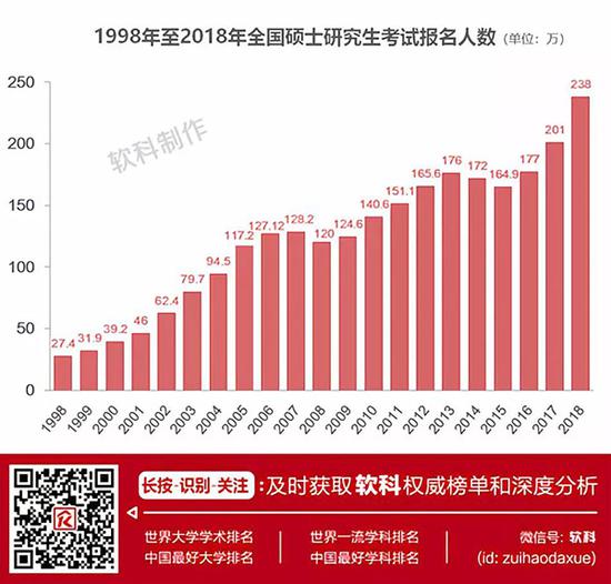 目前,2019年全国硕士研究生考试正在报名阶段,具体报名时间为10月10日至10月31日。据教育部数据统计,去年的考研报名人数(即2018年考研)为238万人,比2017年增加了37万人,增长率为18.4%,报名人数和增加人数均突破历史新高。其中,应届考生131万人,比2017年增加18万人,往届考生107万人,比去年增加19万人。