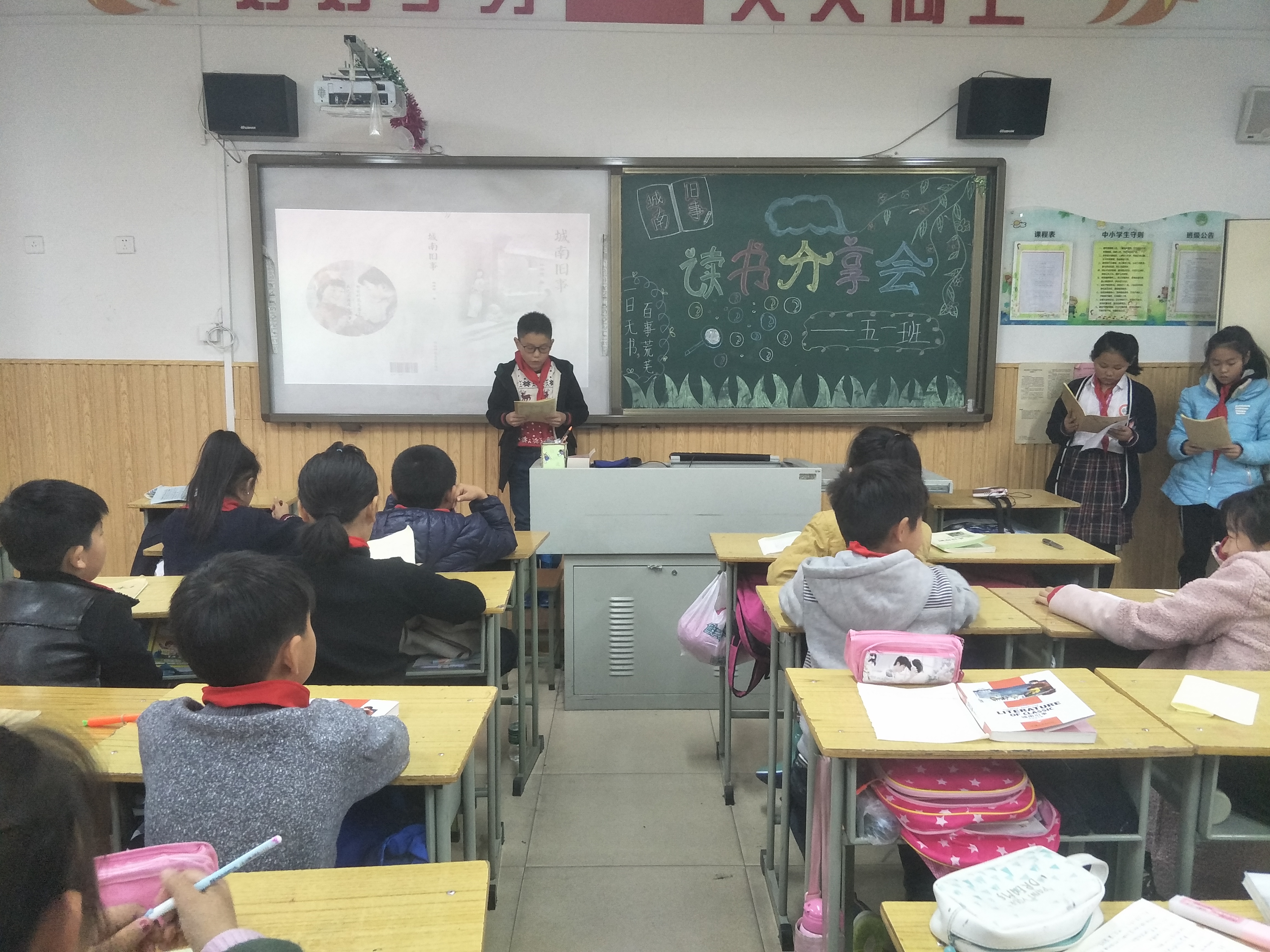 焦宏亮同学说:“和他们相比,我们的童年太幸福了,所以我们要好好珍惜我们现在的幸福生活!”王琪瑶同学说:“童年生活是最有趣的,但是过得太快了,而且一去不复返,所以我们要好好度过每一天!”司运豪同学说:“我决心向小英子学习,做一个新时代的勇于担当的好少年!”活动结束后,王塬塬同学说:“这次读书分享会,让同学们不仅对共读书目《城南旧事》有了更深更广的理解和认识;也更激起了同学们阅读的兴趣和对书的热爱!”(楚智强 马瑞枝)