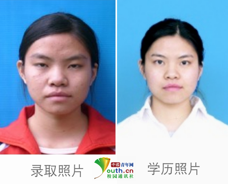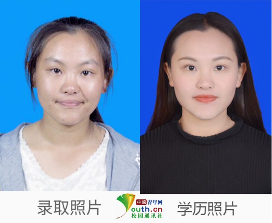 图为贵州工程应用技术学院学生袁忠鸿的录取照和学历照。面对四年的变化,她说:“学会好好珍惜时间,你就会发现,它并不是一把杀猪刀,而是一支内外兼修的美容笔,雕刻下你每一个美好的样子。”本人供图