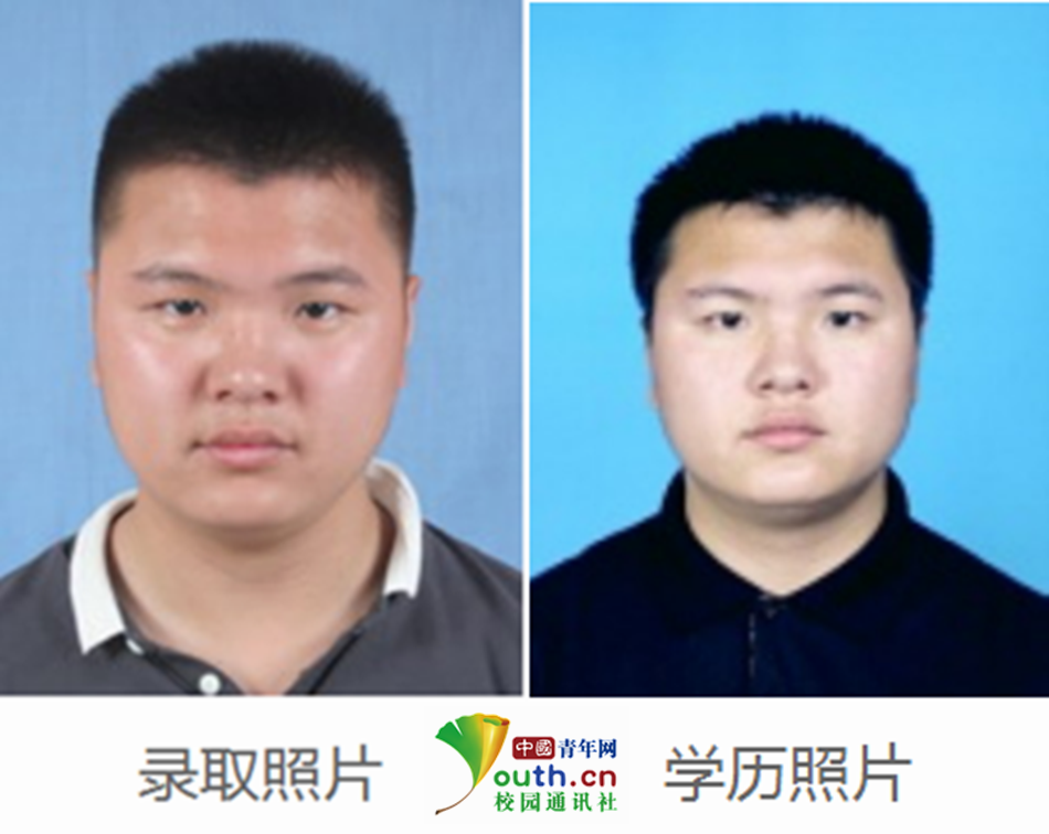 图为安徽电子信息职业技术学院学生宫世界的录取照和学历照。面对四年的变化,他说:“四年来,体重从进校的125斤到现在的180斤。从进校时的小鲜肉,到现在的样子,感觉岁月是把杀猪的刀,希望未来自己能够不忘初心,继续加油。”本人供图