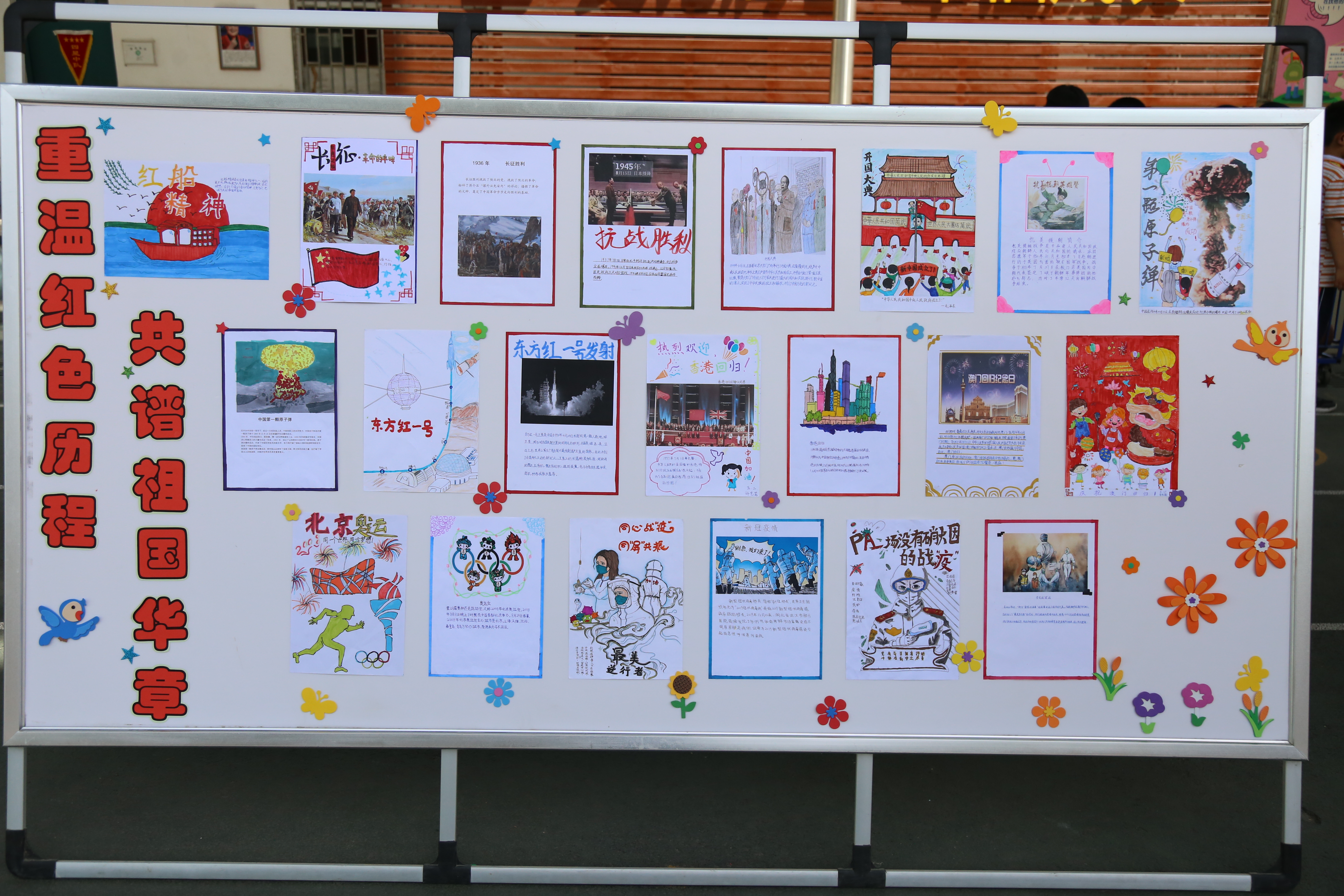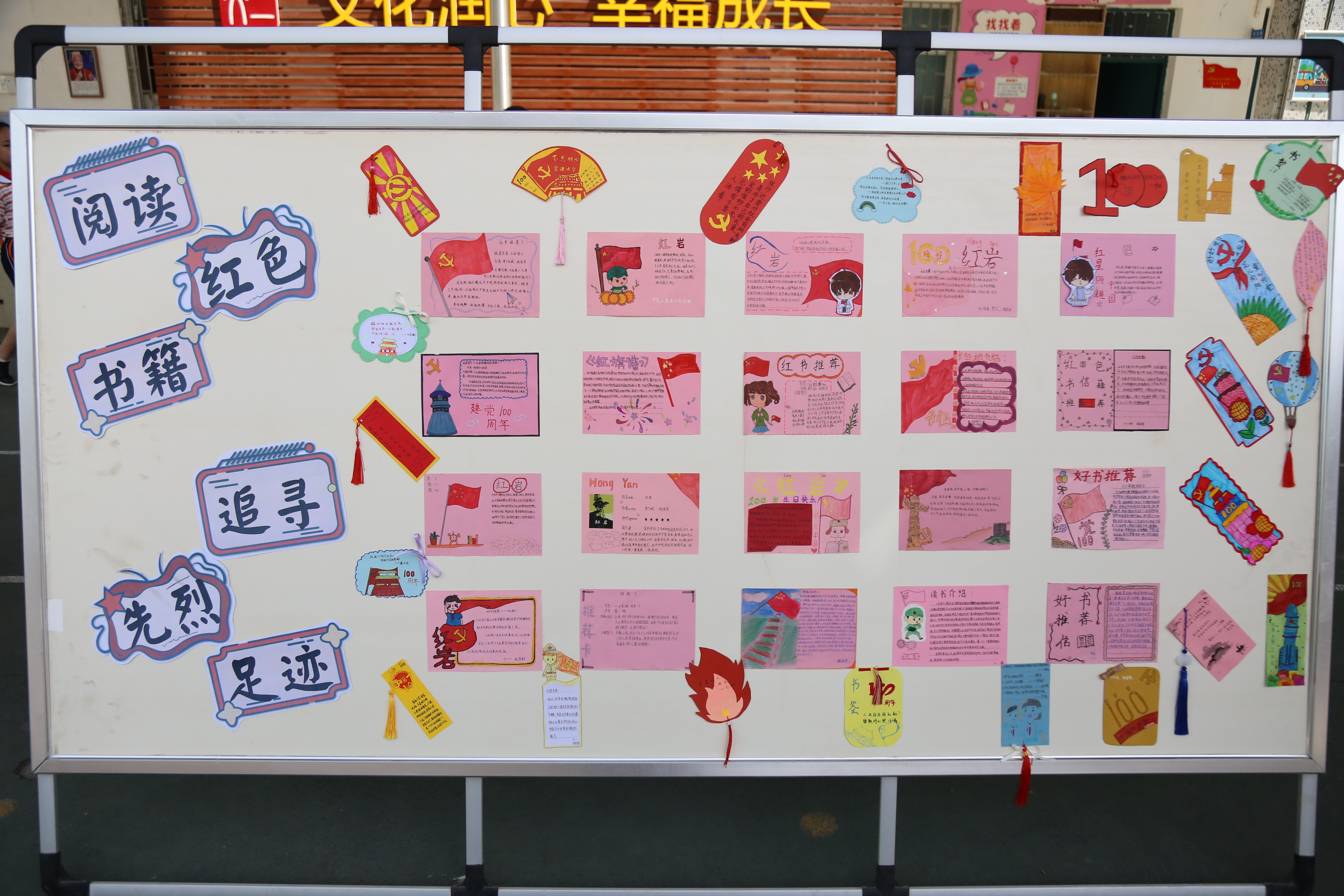 活动中,低年级开展亲子观影活动,在观看《鸡毛信》、《小兵张嘎》、《闪闪的红星》、《我和我的祖国》等优秀红色影视剧中,了解红色历史,培养爱国情怀,传承红色基因;中年级开展阅读红色书信、英雄故事活动,学生们将阅读感受通过手抄报、读后感等形式分享出来,了解幸福生活的来之不易,我们应倍感珍惜,努力学习,报效祖国;五年级开展“重温红色历程 共谱祖国华章”活动,学生用画报的形式重温党的发展历程中中共一大、抗战胜利、开国大典、全面抗疫等光辉时刻,增强爱国主义精神;六年级毕业班开展红书推介、制作红色书签,树立为中华民族伟大复兴的远大理想。