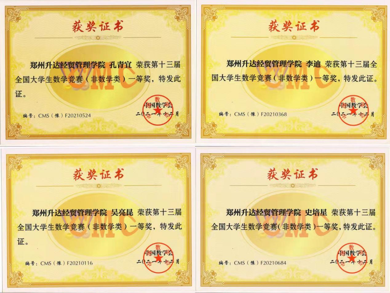 郑州升达经贸管理学院在第十三届全国大学生数学竞赛中获佳绩