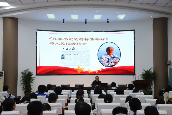 段勃以长篇通讯《县委书记的榜样焦裕禄》为主体内容,为在场师生讲述了焦裕禄发明石雷、研发设计卷扬机等生平事迹,展现出焦裕禄在兰考县治风、治盐碱、治沙等工作中艰苦奋斗的良好精神面貌,塑造了亲民爱民、无私奉献、科学求实的人民公仆形象。