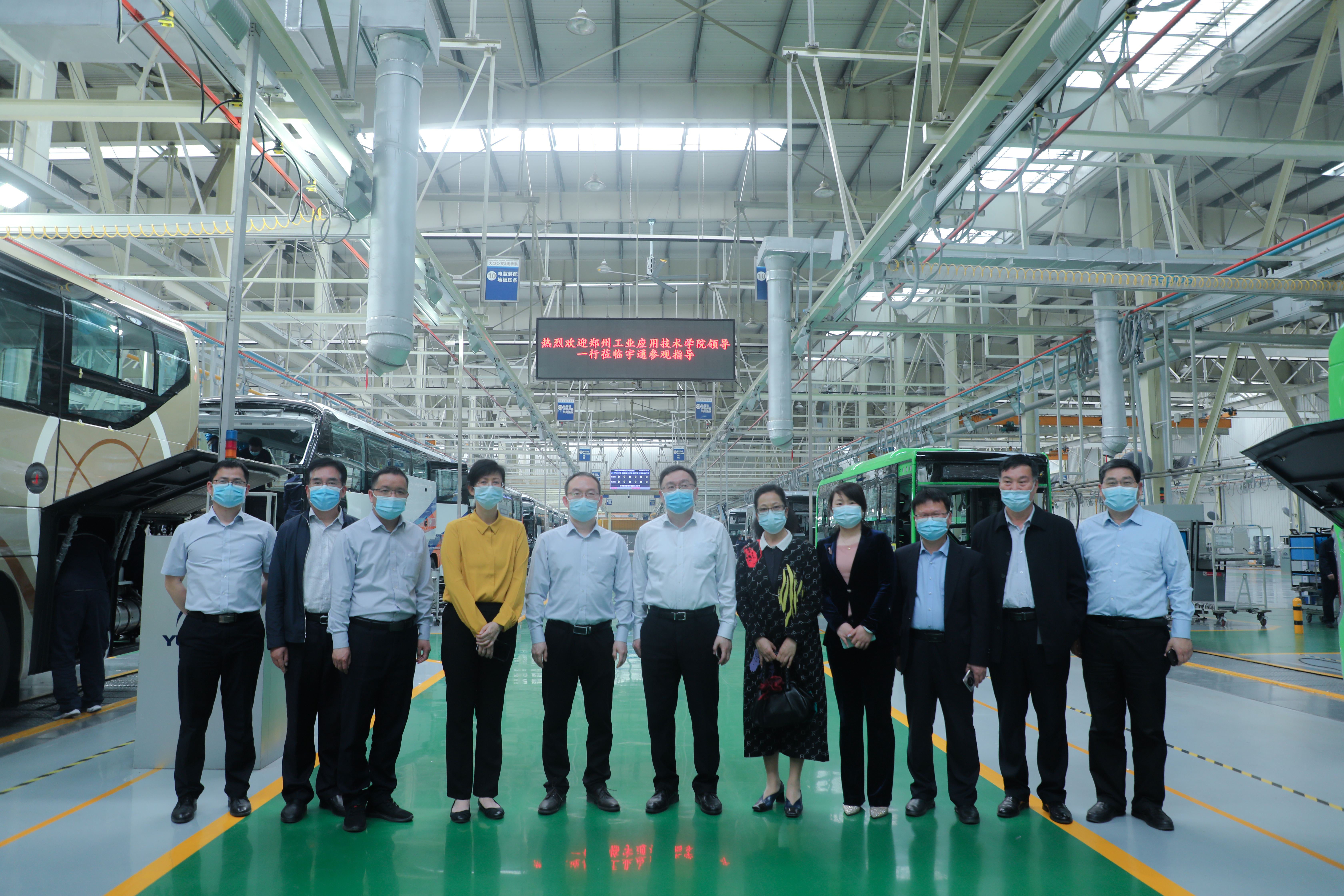4月19日下午,郑州工业应用技术学院校长俞海洛教授亲自率队,带领中原华信集团基金会理事长亓方方、副校长杨新新教授以及校地合作教育处、软件学院、机电工程学院等部门领导一行9人,到郑州宇通集团有限公司走访调研。郑州宇通集团有限公司人力资源部长李峰,校企合作经理韩德利、张晓峰等陪同参观交流。