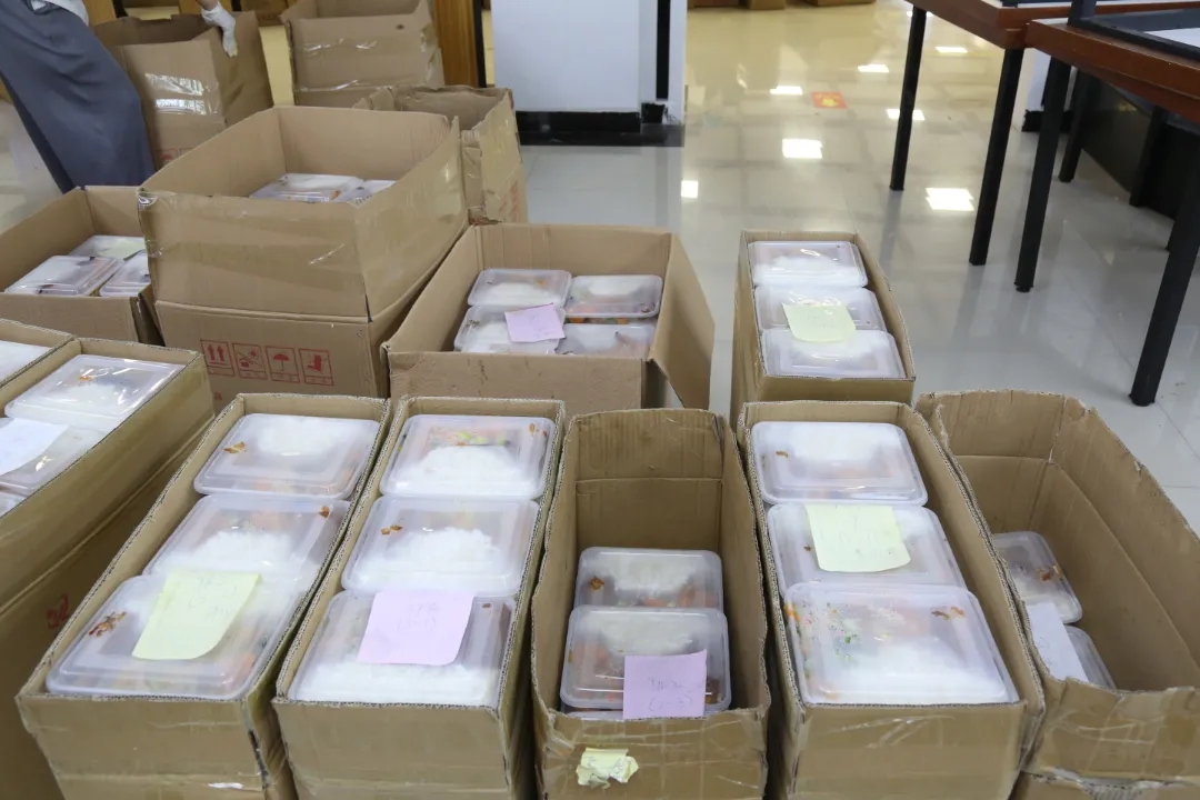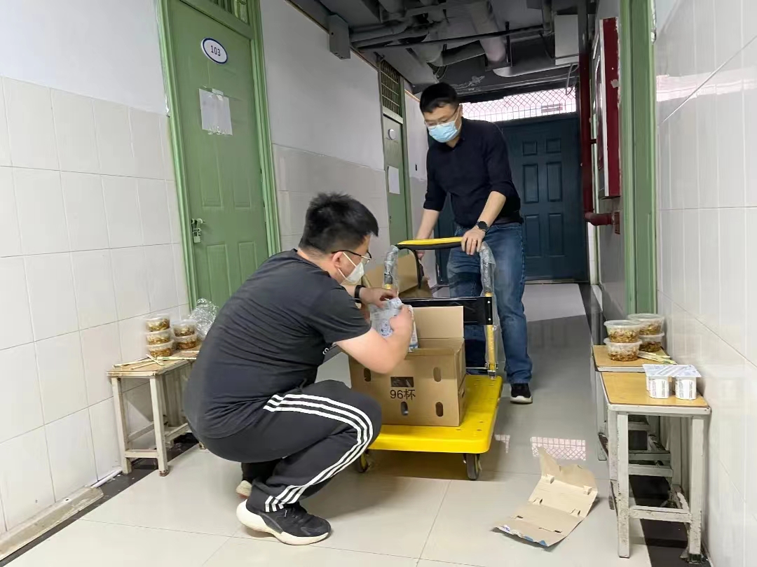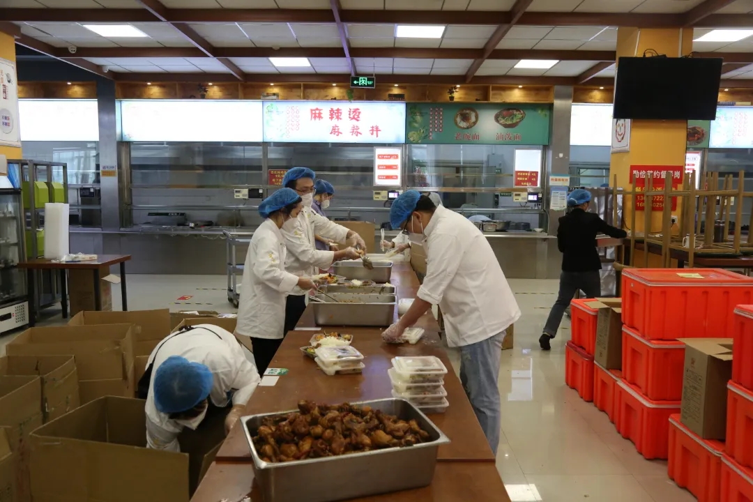 后勤处的同志,无论老少,都发挥了铁军一样的战斗精神。他们付出了比平时工作多几倍的工作量和努力,为1万多名师生准备饭菜,有的窗口更改了品种,他们提升饭菜品质,凌晨便开始备餐,然后打包、装车,送至各个学生公寓、各个部门。
