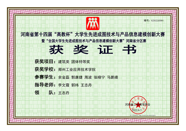 郑州工业应用技术学院建筑工程学院代表队荣获建筑类全省团体总分特等奖第一名、天正杯BIM创新应用特等奖第二名和第三名,以及制图基础知识答题特等奖第三名。同时,郑工学院有两支队伍获得学生个人全能奖35人,其中一等奖10人,二等奖12人,三等奖13人。此次比赛,道桥类实现我校参加此竞赛的历史性突破,获得团体一等奖。