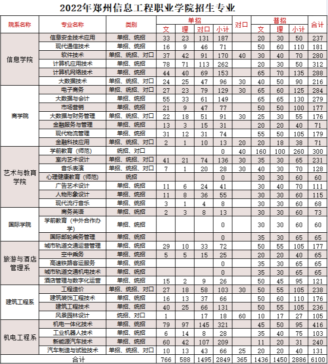 大河网讯 2022河南省高考分数线公布!分数线公布后,随之而来的就是志愿填报。近日,大河网从郑州信息工程职业学院获悉,今年该校共有36个专业招生,计划招生总人数达6100人,分为对口批次、艺术类提前批、普通批三个批次,计划充足。欢迎大家报考郑州信息工程职业学院!