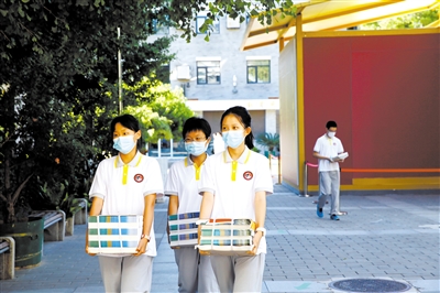 月31日,北京二中高二年级学生在领取新课本。通讯员 周良 摄