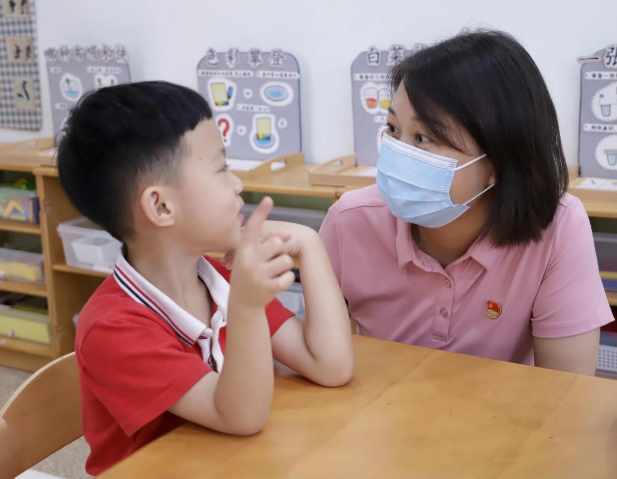 园长张冰与幼儿交流