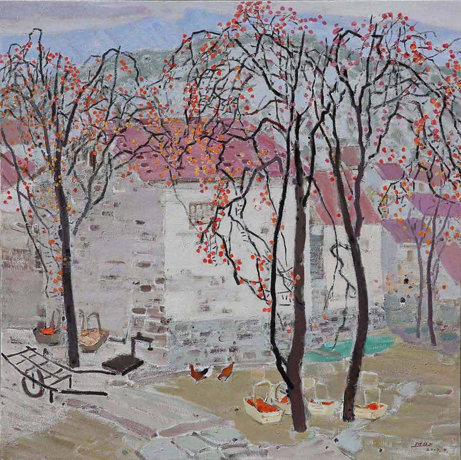 Persimmon tress behind the house, Mao Daizong, 150x150 cm, oil painting on canvas, 2017. [Photo provided to China Daily]