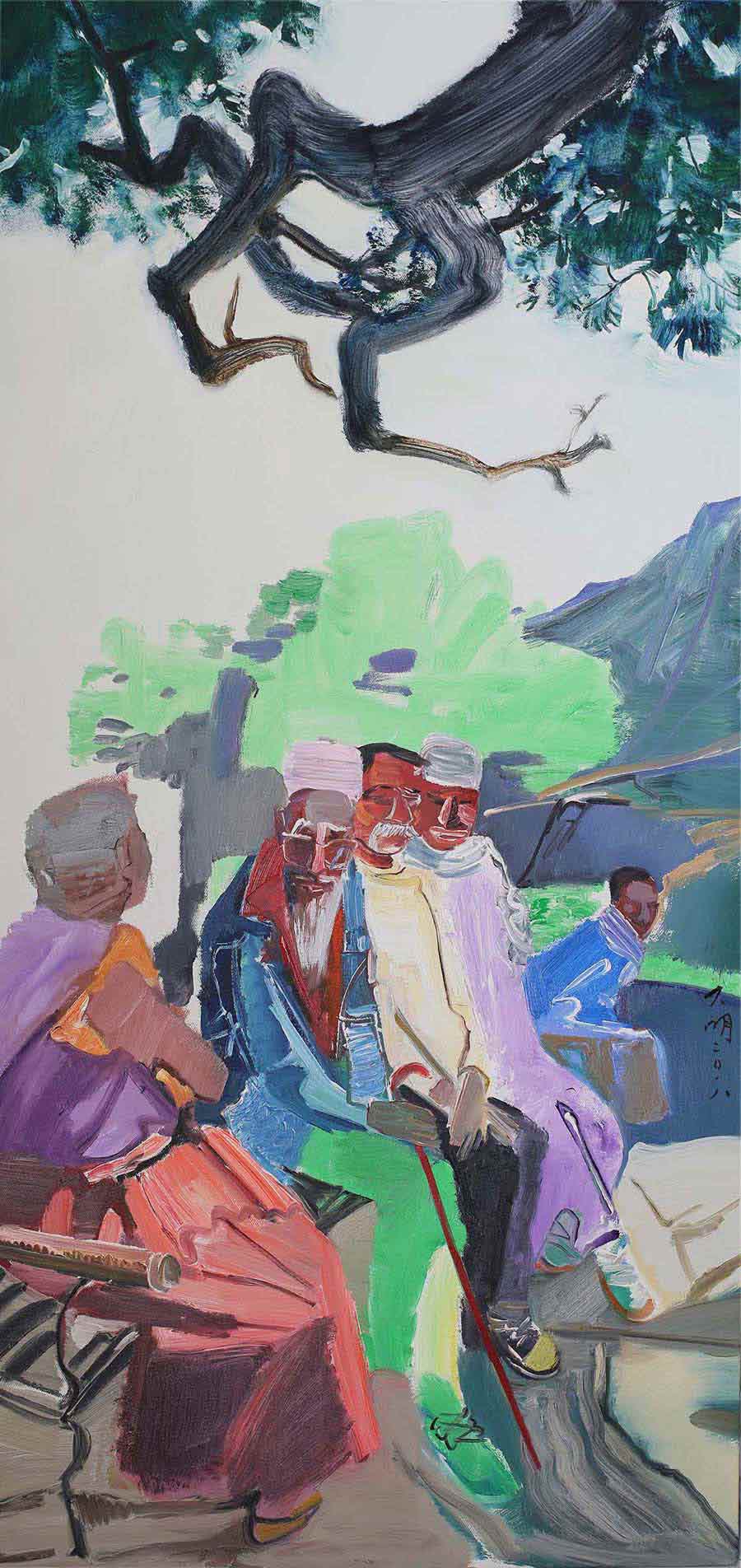Elderly of the Kathmandu, Liu Daming, 150x70cm, oil painting on canvas, 2018. [Photo provided to China Daily]