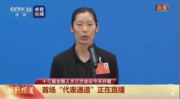 With her height and fame grabbing attention wherever she appears, Zhu, captain of China's all-conquering women's volleyball team, is making her debut at the annual session of the National People's Congress in a vocal way by encouraging people from all walks of life to stay united and resilient in facing challenges, just as her squad did winning glories on the volleyball court.