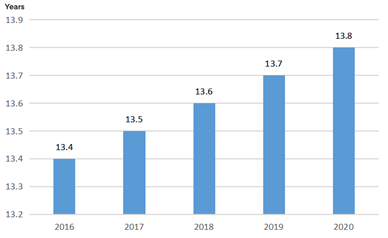 Figure 3 The average years of education for China's newly increased labor force from 2016 to 2020