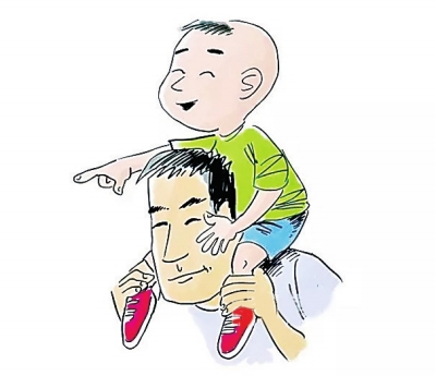 除了高空抛孩子外,“骑马马”“坐高高”,也是一个父母尤其是父亲比较喜欢和孩子玩的亲子游戏。这个游戏是,孩子骑在父母的脖子上,父母抓着孩子的手边走边玩。