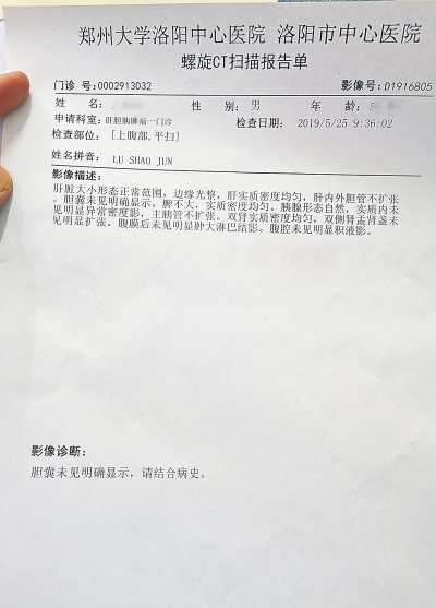 咋回事?洛阳一男子曾做过一次手术 今年体检发现胆囊没了