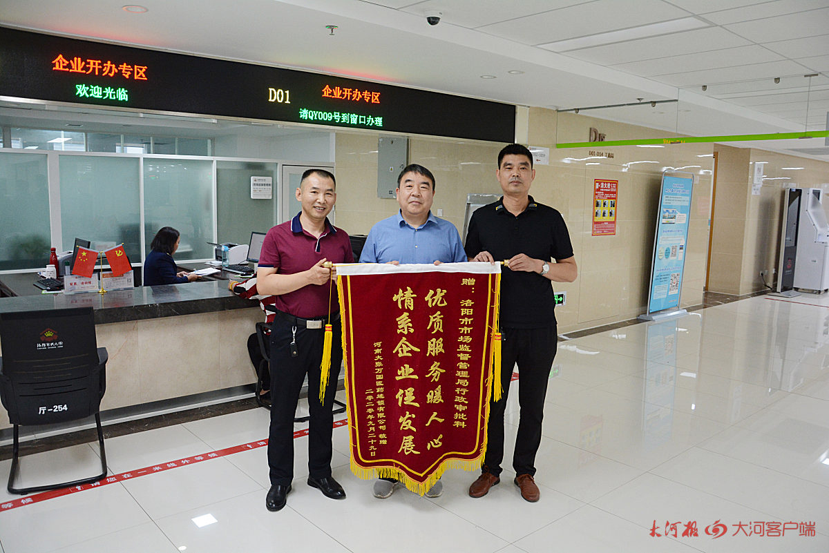 优质高效的服务赢得企业赞许,在领取《药品经营许可证》的同时,企业负责人也将印着“情系企业促发展,优质服务暖人心”的锦旗送到市场监管窗口人员手中。