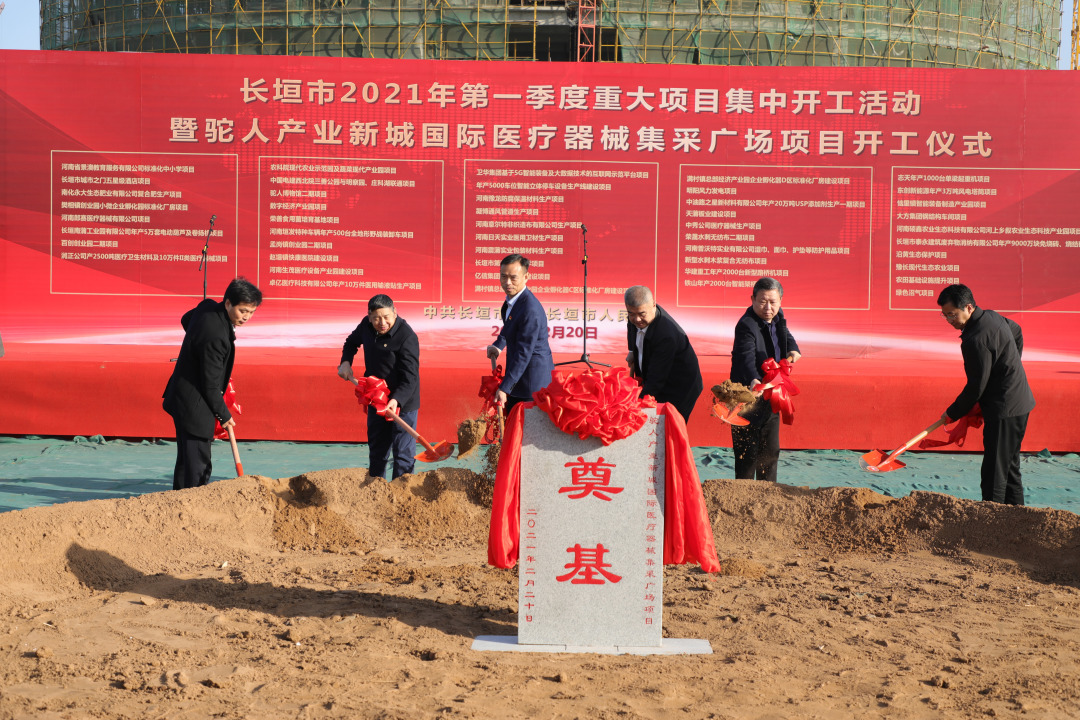 大河网讯(记者 张黎光 通讯员 梅凯红)2月20日上午,长垣市2021年第一季度重大项目集中开工活动暨驼人产业新城国际医疗器械集采广场项目正式开工。参加仪式的嘉宾共同为驼人产业新城国际医疗器械集采广场奠基培土。