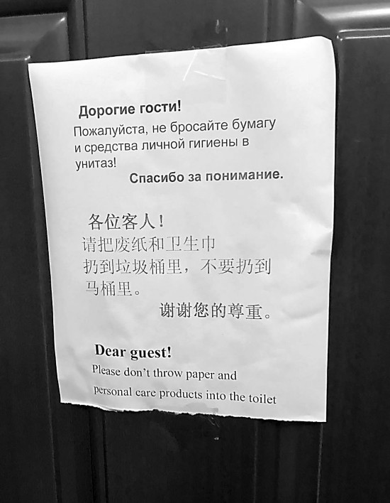李晓鹏经常带中国旅游团,他认为中国游客整体素质较高,但仍有个别不文明行为出现。一次,在利斯特维扬卡一个商场电梯里,一名中国游客吐了一口痰,旁边的俄罗斯妈妈赶紧捂住小孩的眼,并显露出十分厌恶的表情。