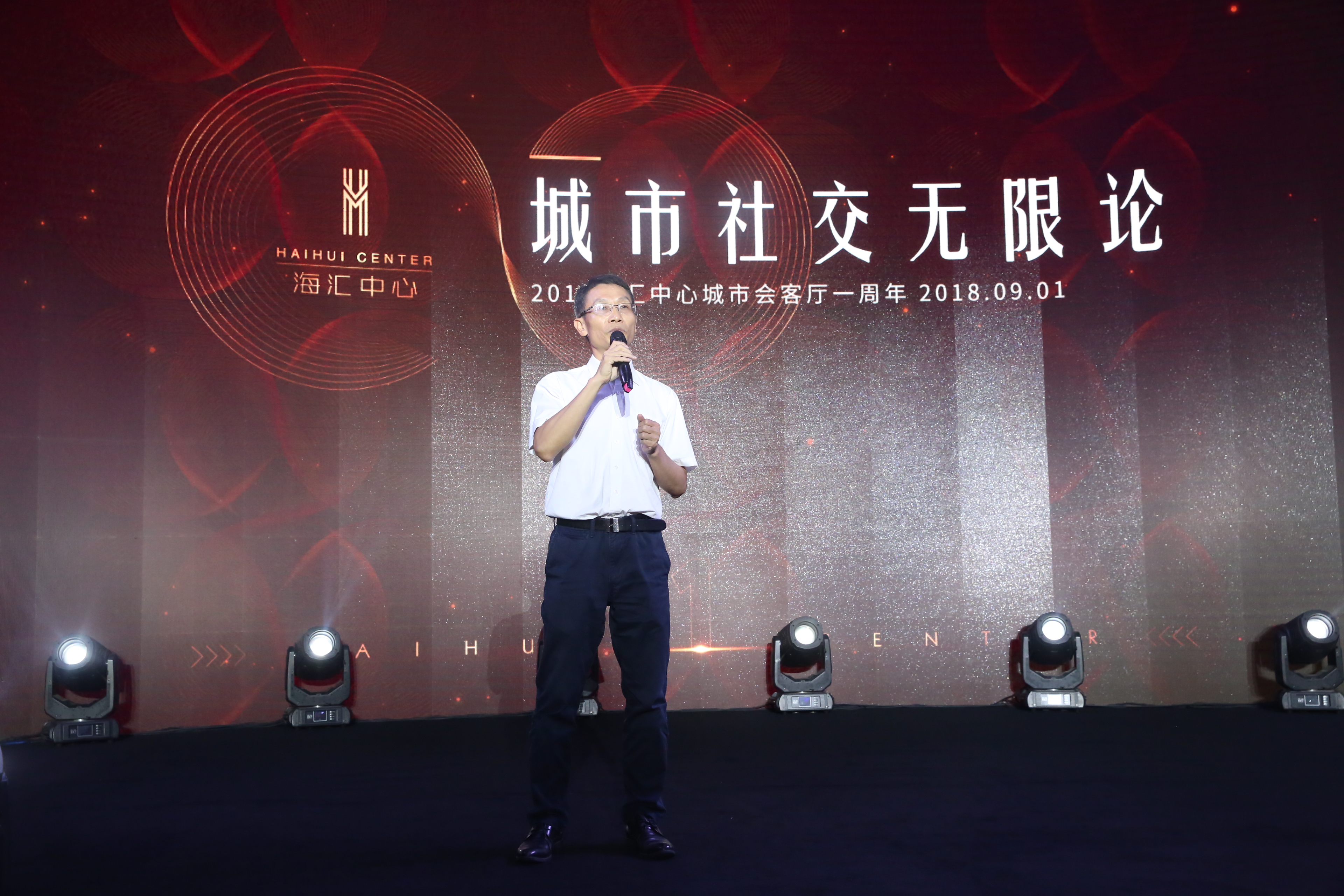 海汇商业总经理白亚东用三个关键词回顾海汇中心一周年的历程。他用入口醇香回味却苦涩的“跳东湖”诠释海汇是朋友畅聊、分享心事的道场;用今夏火遍抖音的“粉红羽毛墙”反应城市文化艺术的兴起;用“莫比乌斯环”寓意跨界与融合是社交商业的无限可能。他还描绘了关于海汇的未来以及如何做好郑州“城市会客厅”的这一角色。