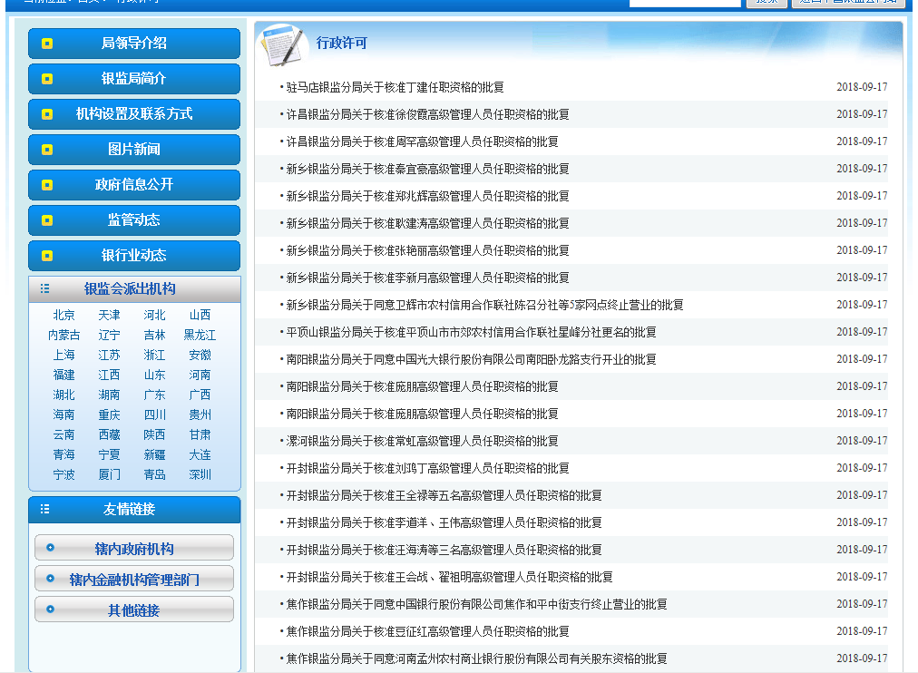 河南银监局:批复河南24名银行董事长、行长等任职资格