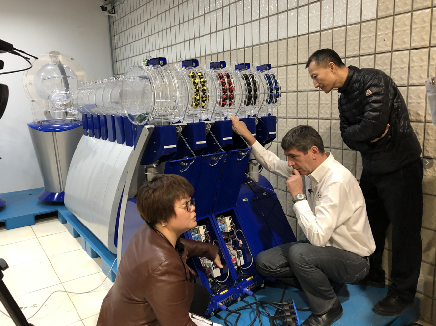 新“维纳斯”摇奖机将于新版开奖节目上线之日与更新后的开奖场地同步投入使用。在此之前,体彩测试小组成员与法国工程师还将对其进行为期一周的测试检查与模拟使用,以确保其在正式摇奖中的安全性和稳定性。