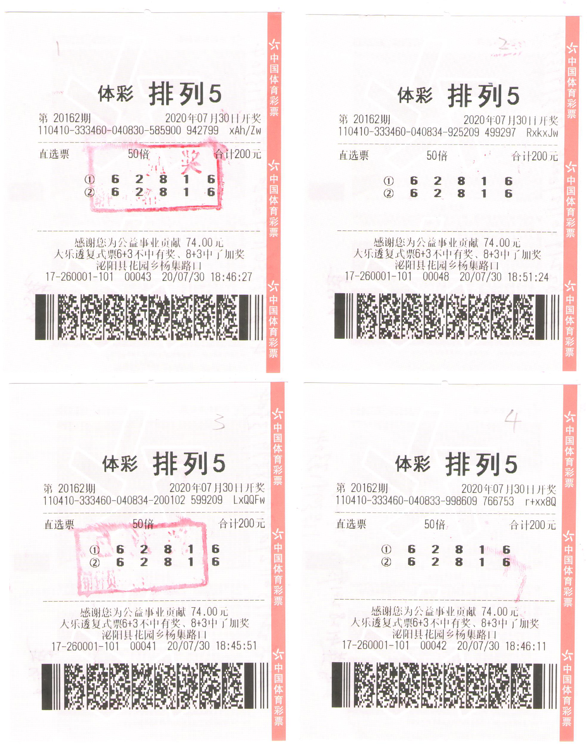 驻马店购彩者用家人生日组号 400倍投注收获“排列5”大奖