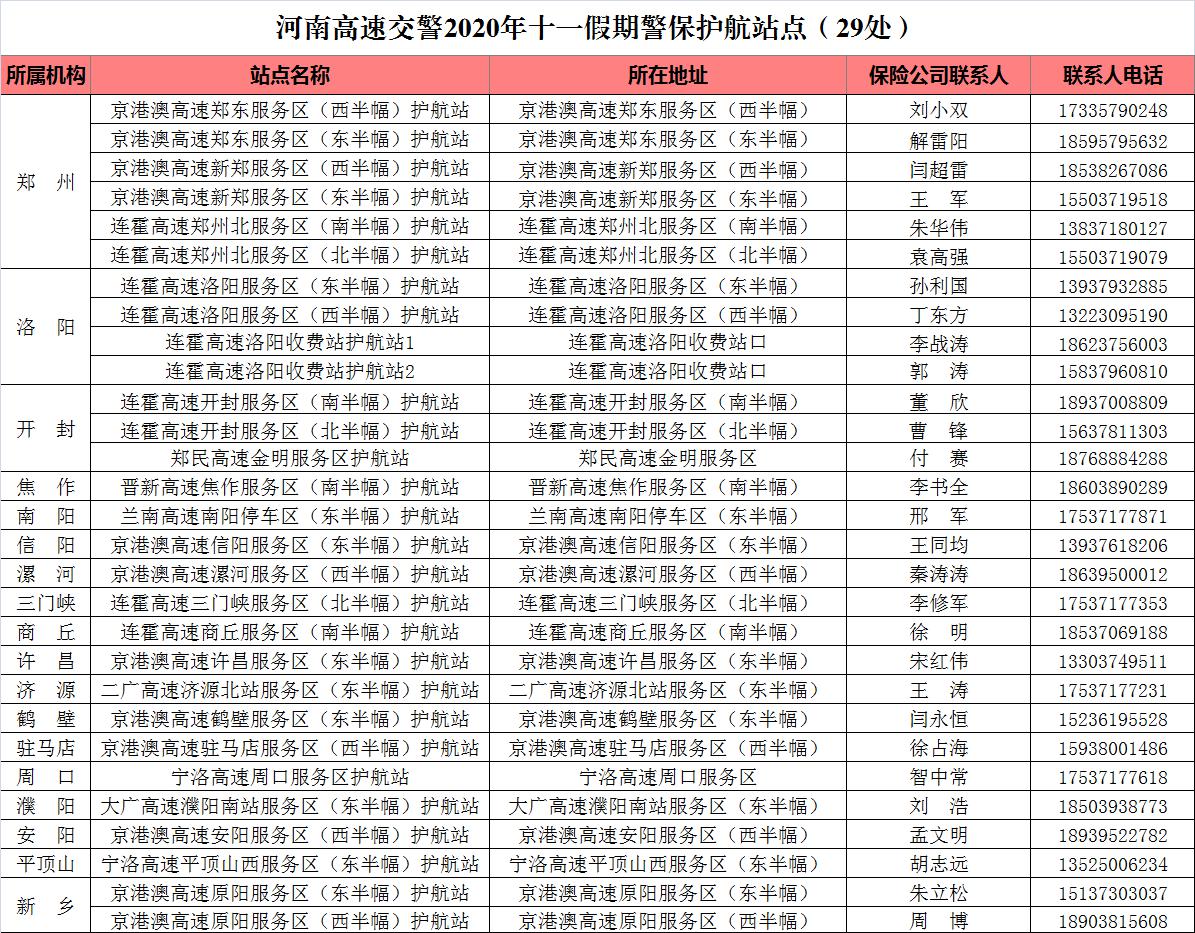河南高速交警温馨提示:在假期出行时,一是出行前一定要提前了解天气情况和高速路况,确保车况良好,油料充足,行车前设置好导航,系好安全带,可以通过“河南高速公安”微博微信了解实时路况信息,合理规划自己的行车路线,切记错开高峰时段。二是要保持安全车速和车距,不要疲劳驾驶,不要随意变更车道,不要违法占用应急车道。三是若在假期行车中车辆抛锚或发生事故,正确的做法是:首先打开危险报警闪光灯,在来车方向150米外设置三角架警示牌,同时车上人员迅速撤离到安全地带,然后拨打河南高速交警报警电话0371-68208110报警求助。