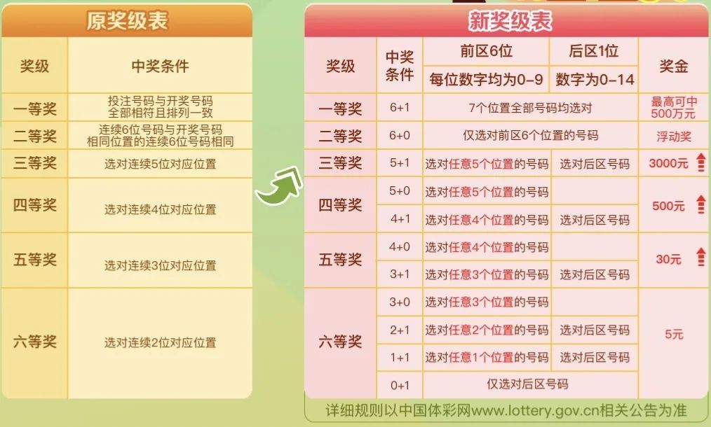 首先,最直观的变化就是奖金,新7星彩一等奖奖金成色更足,三等奖由1800元提升至3000元,四等奖由300元提升至500元,五等奖由20元提升至30元,大奖小奖都有惊喜!