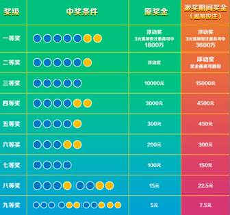 大奖幸运翻倍,小奖同样值得期待,固定奖派奖金额共4.5亿元,派奖期间,进行追加投注且中得三至九等奖中任意奖级的彩票,同时中得派奖奖金,单注派奖奖金为当期对应奖级单注奖金的50%。